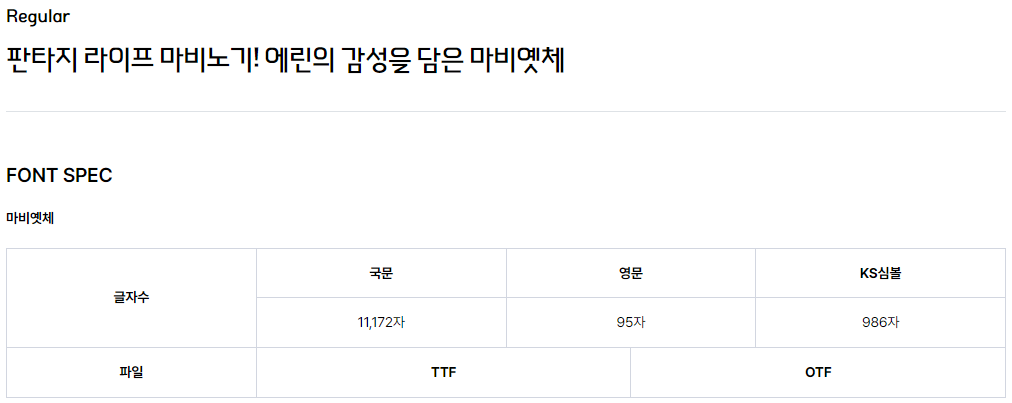 마비옛체는 마비노기의 공식폰트로 마비옛체를 통해 에린의 발랄하고 평화로운 분위기에 녹아들었습니다.