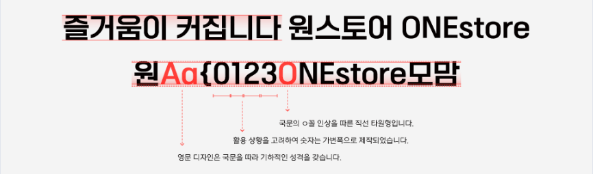 원스토어만의 성격이 담긴 생동감 있는 손글씨 서체. 글자에 생기를 불어넣는 리드미컬한 라인과 요소를 담음.