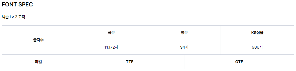 다양한 분야에서 두루 사용할 수 있는 넥슨 Lv.2 고딕 서체입니다.