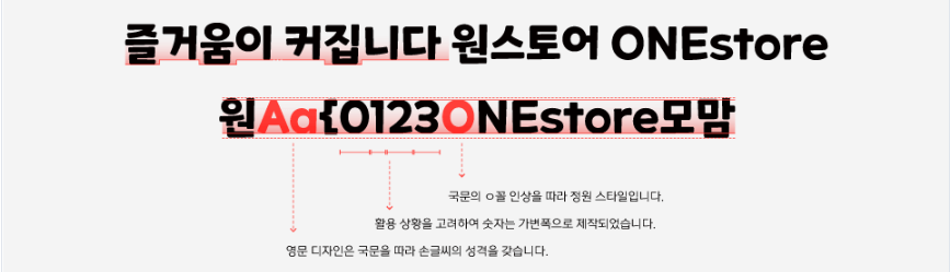원스토어만의 성격이 담긴 생동감 있는 손글씨 서체. 글자에 생기를 불어넣는 리드미컬한 라인과 요소를 담음.