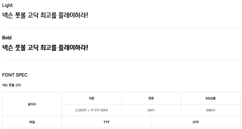 넥슨 풋볼 고딕은 축구 경기의 역동적이며 박진감 넘치는 느낌을 토대로 제작된 폰트입니다.