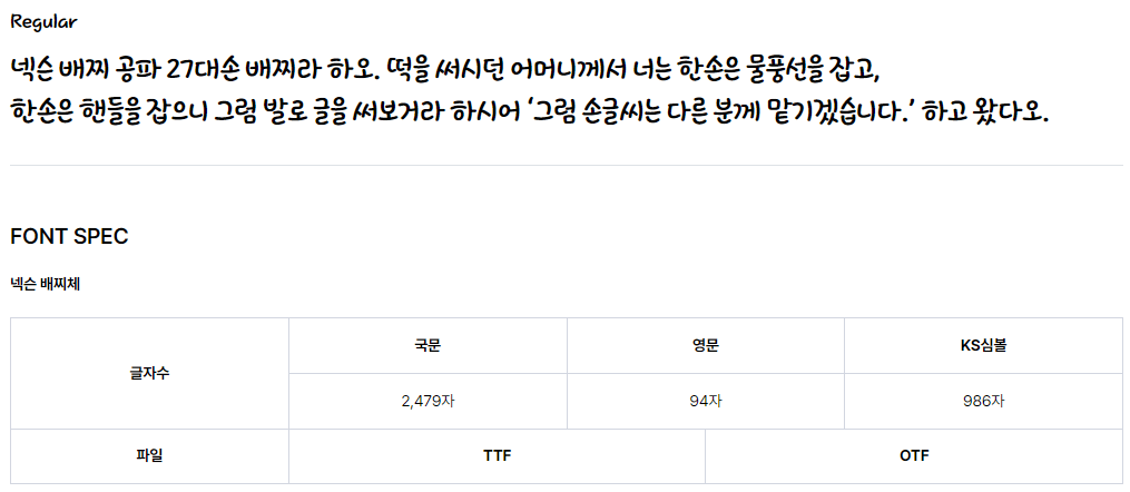 넥슨 배찌체는 2019년 공모전을 통해 제작된 서체입니다.