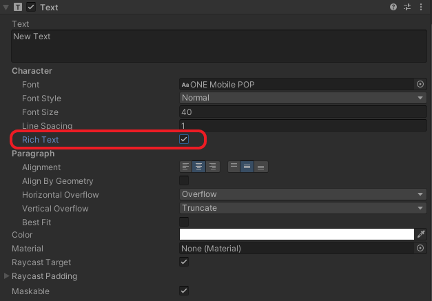 Text Component에서 Rich Text 항목이 체크되어 있으면 사용가능합니다.